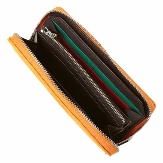 じっくりと丁寧に鞣された角シボエンボスレザーを使用し、メタルロゴとブランドカラーがポイントのベーシックな小物シリーズ。
