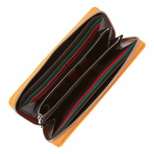 じっくりと丁寧に鞣された角シボエンボスレザーを使用し、メタルロゴとブランドカラーがポイントのベーシックな小物シリーズ。