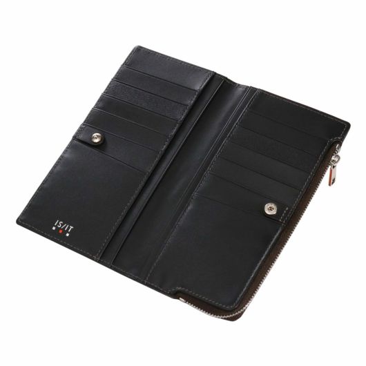 発色の美しいイタリアンレザーを参考にした、鮮やかなカラー展開が魅力のコンパクトな長財布。ジェンダーレスなデザインを意識し、個性的で汎用性の高いダブルエンボスレザーを使用しています。