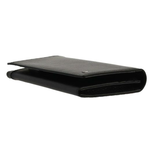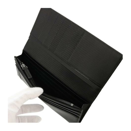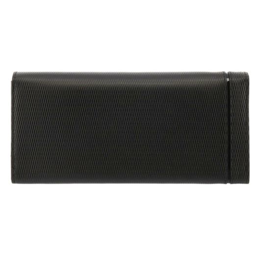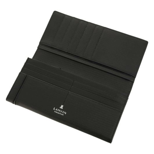 良質なレザーにエンボス加工を施しました。光沢のあるガラスレザーをライン状に切り替えをしたデザインで、ランバンコレクションらしいシャープな仕上がりとなっています。シンプルで機能性も兼ね備えた長財布でギフトにもおすすめです。表のメタルのログマークがさりげないポイントになっています。