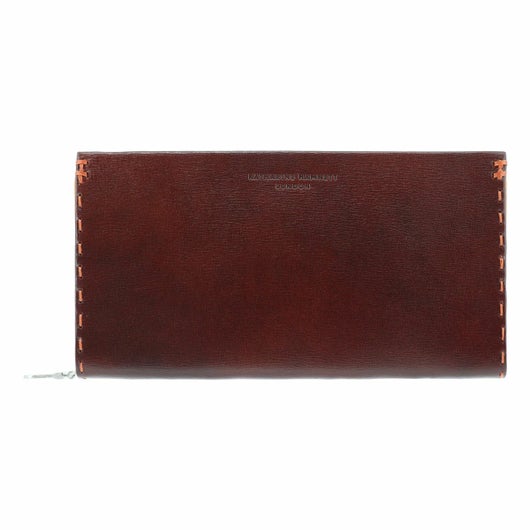手縫い仕上げと遊び心のあるカラーコンビをそのままに使用する材料をアップグレードしました。表革は、国産の牛ヌメ革をアンティーク調に染め上げ、さらに複雑な型押しや揉み加工を施す事により無二の質感になっています。内装生地にはリサイクルポリエステル繊維ECOPETを使用、環境問題に取り組むキャサリンハムネットの意識を体現しております。