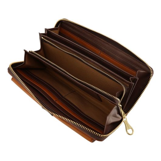 表側のベルト部分がデザインのアクセントとなっており、カラーコンビネーションを楽しめるデザインにしています。内装には国産牛革を細部に渡って配し、高級感のある仕上がりとなっています。