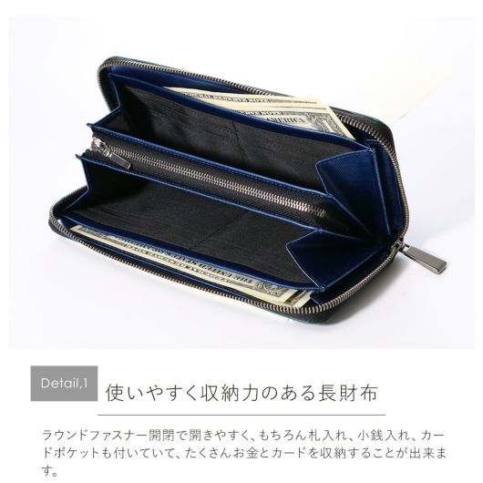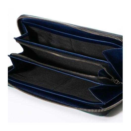 日本随一の技術を持つガラス革専門のタンナーで作られたガラス革に型押しを施して二度押ししたように見える独特の型押しで陰影のある表情が特徴です。表面に傷もつきにくく、シンプルな表情はギフトにピッタリです。