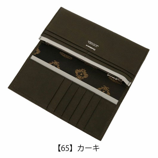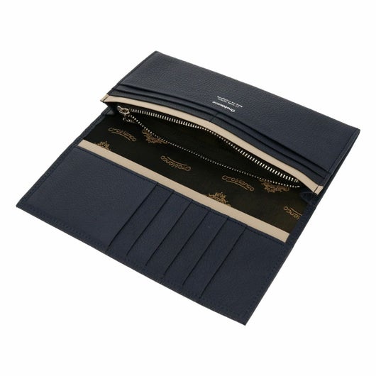 内装にワンポイント革の変化を付けたポインテッドシリーズ長財布。国産のステアを使用し姫路のタンナーで革を生産しました。