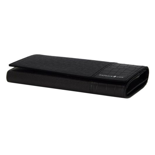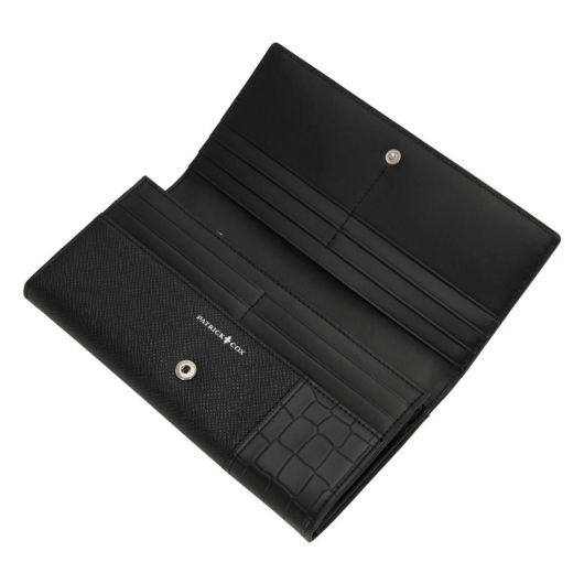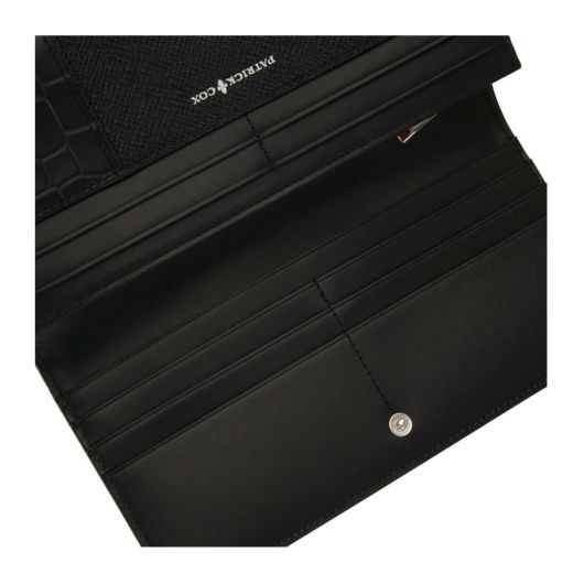 繊細な型のエンボスレザーとクロコのエンボスレザーを切り替えで組み合わせた表情のあるシリーズです。内側の良質なスムースレザーのあわせと裏地のチェック柄生地により、パトリックコックスらしいスタイリッシュな仕上がりとなっています。カードの収容量の豊富さも魅力のかぶせタイプの長財布はお札を折らずに入れられるので会計時にスマートに出し入れすることができます。