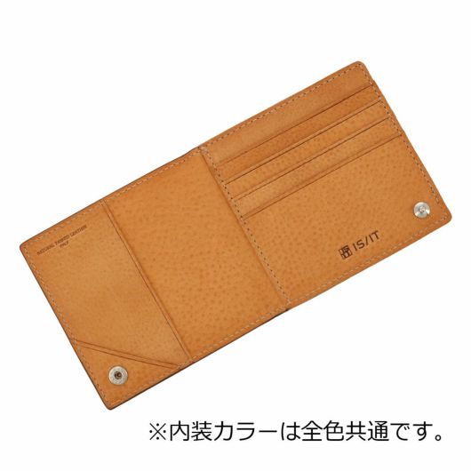 革本来のナチュラルな質感が魅力のイタリアンショルダーレザーを使用したIS/ITの二つ折り財布。札バサミタイプでありながらもレシートや紙幣を畳んで収納できるスリットポケットがついており、しっかりと仕分けをしたい方や、旅行用に紙幣を分けて管理したい方などにおすすめの財布です。