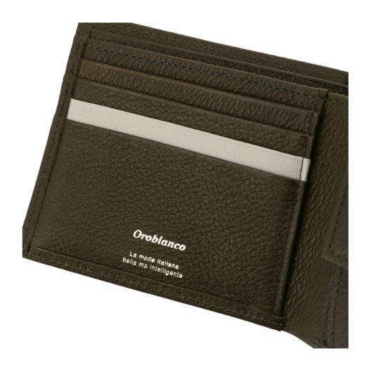 内装にワンポイント革の変化を付けたポインテッドシリーズ二つ折り財布。国産のステアを使用し姫路のタンナーで革を生産しました。