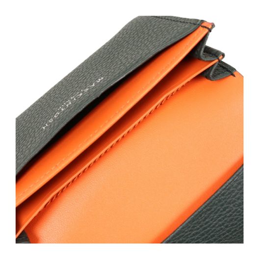 英国風のオーセンティックな逸品を輩出し続けるMACKINTOSH LONDON。こちらはシンプルでベーシックなシリーズ『MEDAL』の名刺入れ。深みのあるシュリンク型押しレザーにメダル形状のロゴプレートがさりげなくエレガントさを加え、ビジネスシーンにも違和感なくお使いいただけます。内装はササマチ仕様のカード収納部を2ヶ備える、仕分け管理に長けた設計。ご自分の名刺と頂いた名刺とを分類し、きれいに整理整頓していただけます。外側の背面にもフリーポケットを装備。すぐに取り出したいカードや名刺を入れておくのに最適です。本体素材にはソフトな質感が心地良く手に馴染む牛革スムースを採用し、内装革は存在感のあるオレンジの配色で統一しています。表面のシュリンク型押しは大人の印象を引き立たせるだけでなく、傷が目立ちにくいメリットも。外側のヘリは総コバ塗りとなっており、スッキリとした外観に仕上がりました。