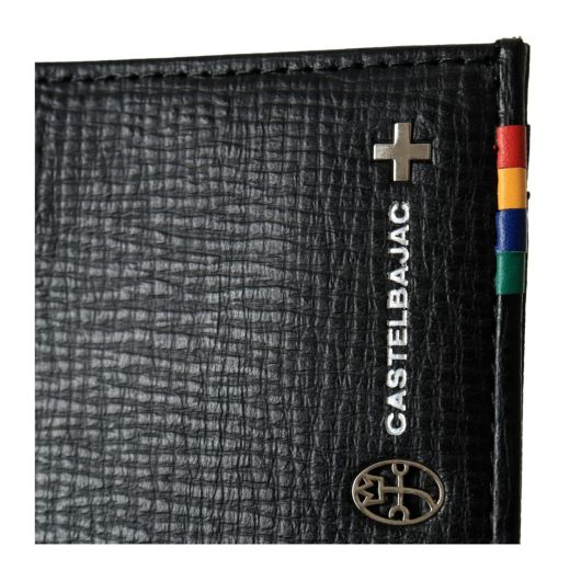 じっくりと丁寧に鞣された角シボエンボスレザーを使用し、メタルロゴとブランドカラーがポイントのベーシックな小物シリーズ。