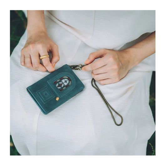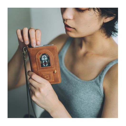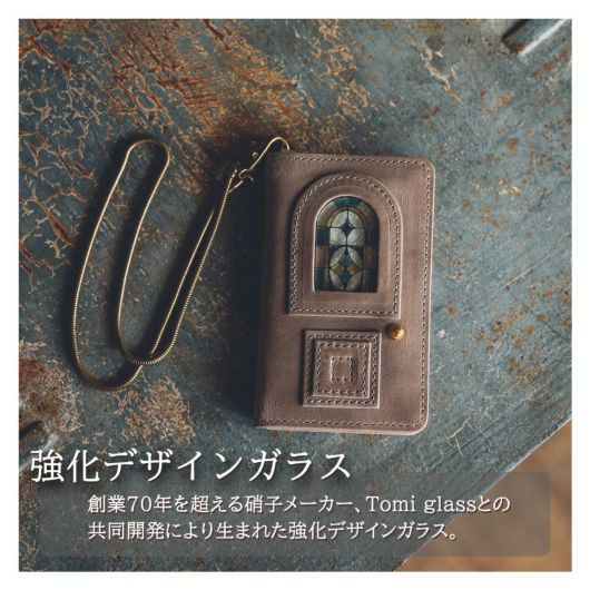 持ち運ぶオブジェのような、ステンドグラス調のリアルガラスと本革の融合させた作品。アンティークなドアを象ったデザイン。オイルを含んだ牛革は、劇的な経年変化をもたらし、お使いいただいた方だけのヴィンテージドアへと変化します。革や芯材などは類似の商品と比較し、倍近い種類とパーツ数。組み立てにおいては、微細な誤差で表情が大きく変わってしまう為、限られた熟練の職人のみが生み出すことのできる希少価値の高い作品です。完成までに約2年をかけた、最高傑作です。