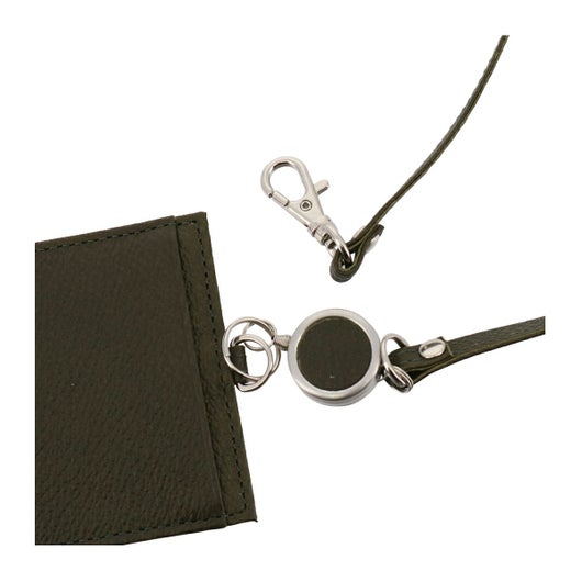 内装にワンポイント革の変化を付けたポインテッドシリーズリール付きパスケース。国産のステアを使用し姫路のタンナーで革を生産しました。