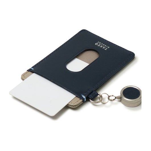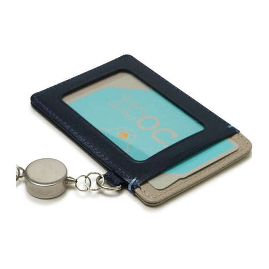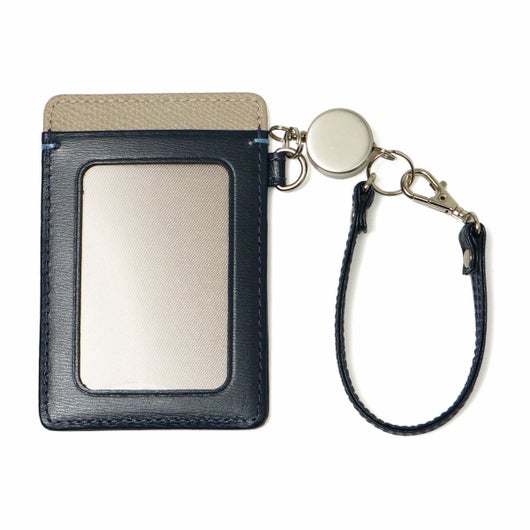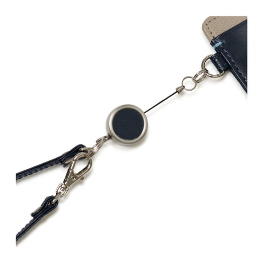 2面タイプのパスケースに伸縮リールが付属した使い勝手の良いアイテムです。バッグの持ち手に付けるなどの使い方がおすすめです。パスケースからリール部分を取り外し可能。