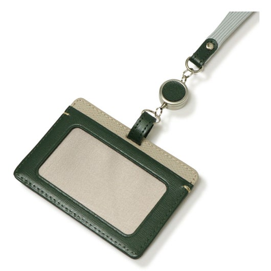 伸縮リールがついた使い勝手のいいIDケース。首にかける紐には革を使用せず、首あたりのやさしいポリエステル素材を使用しています。