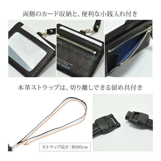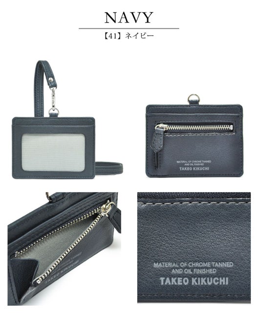 1706319 TAKEO KIKUCHI 小銭入れ付き パスケース カードケース IDホルダー ICカード ネックストラップ 牛革 本革 レザー