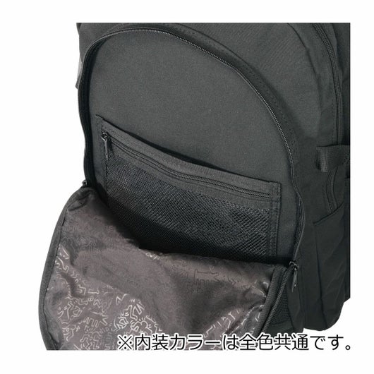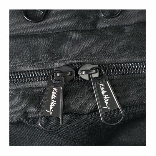 31年の短い生涯の中で精力的に生み出された彼の一目で分かる独特で非常に個性的な作品は各国の美術館やギャラリー、書籍、雑誌、ドキュメンタリーそして世界中のブランドとコラボレーションなどで見る事が出来ます。こちらのシリーズは、正式にライセンス契約のされたキースのアートワークを使用した、収納面に優れた3層ラウンドリュックです。ブランドロゴのチャーム付いており、ライニングにはキースアートワークの総柄プリントが施されています。PC対応のポケット付き!
