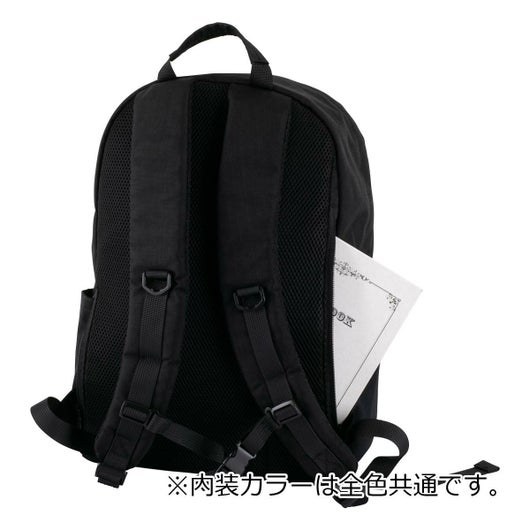 正面はシンプルでも底面のビッグロゴがアクセントに。背面にはスマートフォンやパスケースなどの出し入れに便利なポケットと中にダイレクトにアクセスできるファスナー付き。
