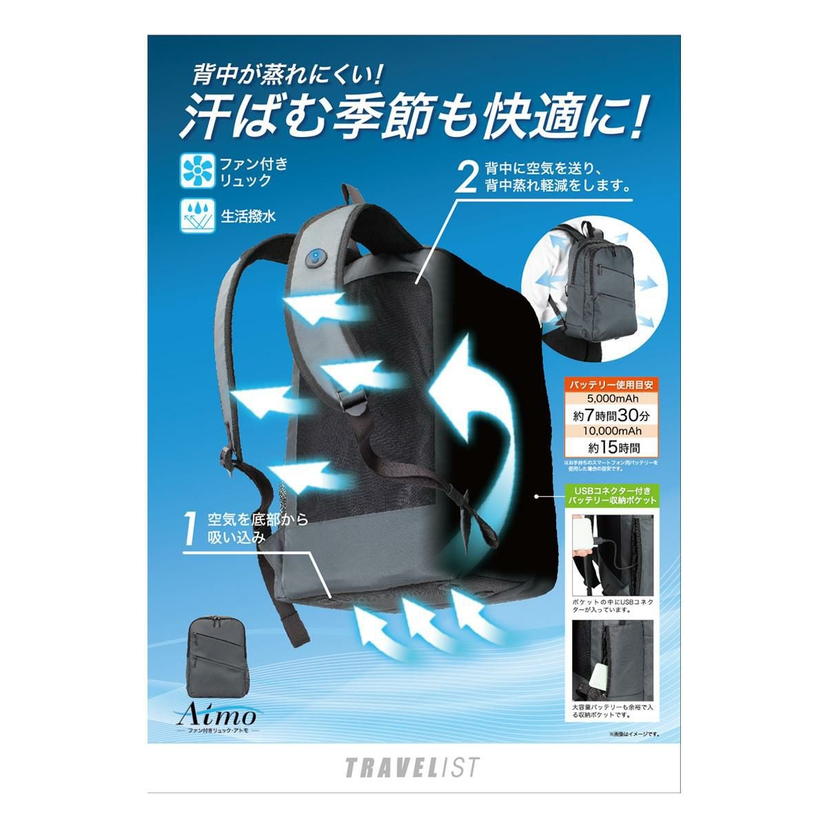 他の画像を見る TRAVELIST トラベリスト リュック トラベリスト リュック ファン付き 一年保証 アトモ メンズ レディース 76-70300 TRAVELIST | バックパック デイパック 軽量 撥水 通勤 通学 販売価格 ¥ 14,080 税込 詳細を見る お気に入りに登録する