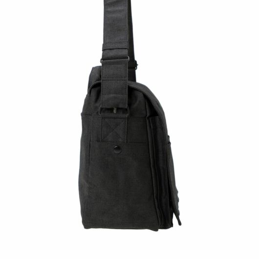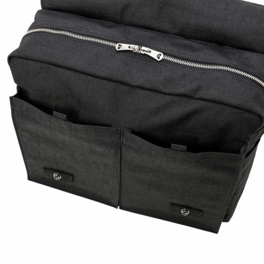 ショルダーバッグはA4サイズの書類が入るサイズでマチ幅もあり、かさばる荷物の収納も可能です。フラップにはスマートフォンやパスケースなど、取り出す頻度の高い荷物を収納するのに便利なポケットを備えています。ショルダーストラップの付け根にDカンを付属しているので可動域が広く、体にフィットしやすい仕様です。本体上部のハンドルで、手持ちのスタイルで持ち運ぶこともできます。