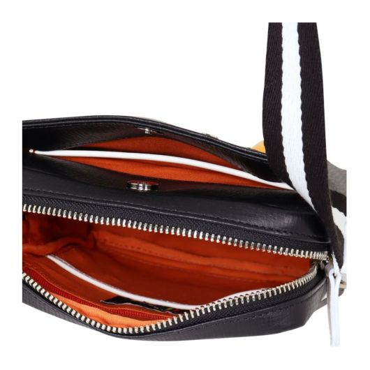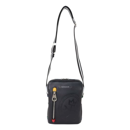 味わいの良いエンボスレザーに大胆な家紋・メタルパーツによるロゴ表現、CASTELBAJACのカラーやラインテープ等、ブランドらしいテイストを詰め込んだレザーカジュアルシリーズ。A5サイズ対応でタウンユースやちょっとした旅行のサブバッグにも便利。仕分けも行えるポケット配置で使い勝手良さも考慮。