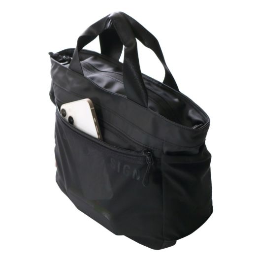 手持ち、ショルダーと使い分けられる2WAYタイプです。小ぶりな見た目ですが、マチ幅もしっかりとあり、見た目以上に頼りになる収納力。ポーチなど普段持ち歩くアイテムはしっかりと収まります。なお、本体の内外にポケットを設けることで、細かなアイテムも迷子にならず、扱いやすさにも配慮された仕上がりとなっています。500mlサイズのペットボトルも収まりハンドタオルや長財布など普段必要性の高いアイテムも入れて頂けます。