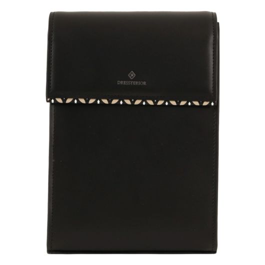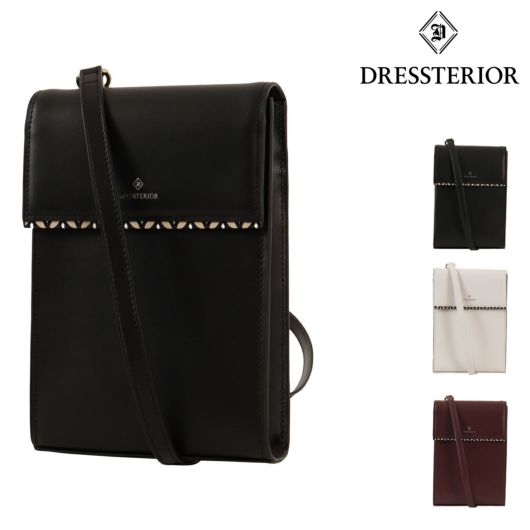 本体素材には厳選されたキップ調牛革を使用しています。さらさらとしたタッチ感ときめ細やかな肌目が特徴です。フラップ先と裏側にはDRESSTERIORの象徴【オーバーラップサークル】をプリントした牛革を使用しています。