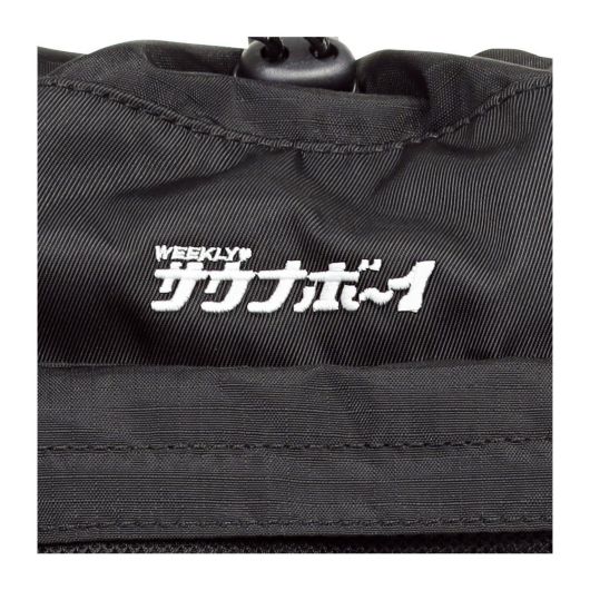 メイン生地は多少濡れても安心な撥水加工、内装生地は水風呂を意識したブルーで”サウナ仕様”に。ロゴも今回のコラボレーションのために作られた特別版です。