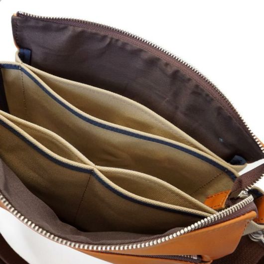 姫路のタンナーで丁寧にイタリア製のオイルを染み込ませて鞣した、柔らかで手触りのいいレザーに防水加工を施し、倉敷帆布を合わせたナチュラルテイストのレザーバッグ。