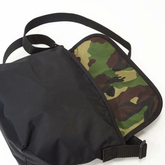 素材を軽くて柔らかなナイロン素材に変更し、ファスナー部分の一部をミントカラーで仕上げました。内生地には迷彩柄を施し、見えない部分にも拘りを詰め込んだノーティアムしかない別注デザインです。