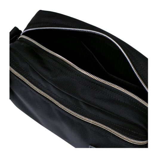 高級感のあるレザーパッチとメタル調コイルファスナー仕様の別注モデルです。全面パッドがつき中身を保護してくれるため、電子機器や貴重品を収納するのに最適なポーチです。