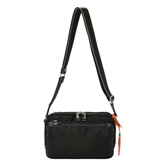 「収納しやすい」を追求し完成した、イズイットのミニショルダーバッグ。フロントにある機能的な2層式のポケットがポイント。スマホや財布類など、使用頻度の高いアイテムが収納しやすいようデザインしました。