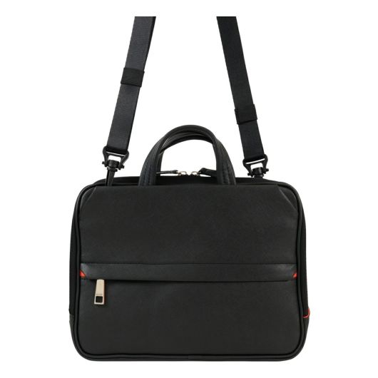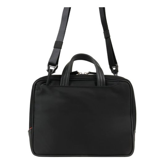 前面にはサフィアーノ型合成皮革を、ハンドルには手に馴染む牛革を、そしてマチと背面にはナイロンを使用した異素材コンビでスッキリとしたデザインのきれいめコンパクトビジネスバッグ。ショルダーベルトが搭載し、クラッチバッグやショルダーバッグとしてもお使いいただけます。