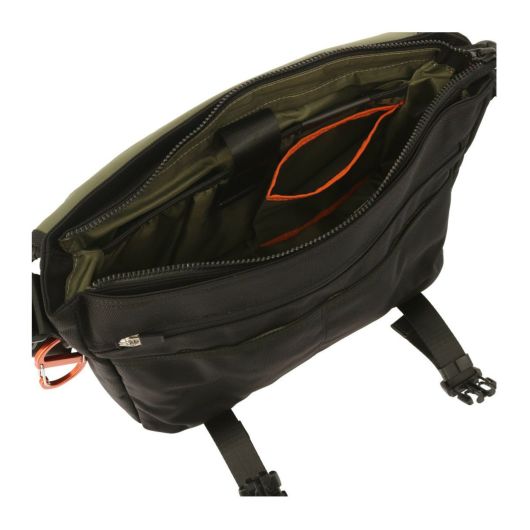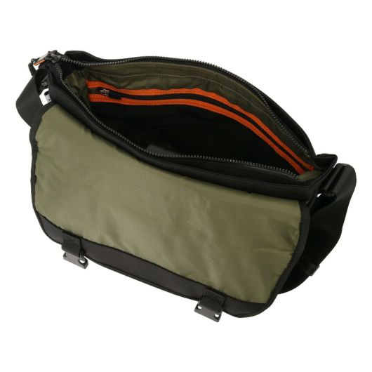 本体生地には、引き裂きに強く耐摩耗性に優れたCORDURA Hollofil AIR(Ballistic Nylon)を使用。表面には撥水加工が施されており、中空糸を使用することで軽量化を実現しています。また、付属革にはスコッチガードレザーを使用しており、耐水性と耐久性を兼ね備えています。さらにパーツやブランド表現などディティールにもこだわり、機能的で使い勝手の良い仕様を実現しました。