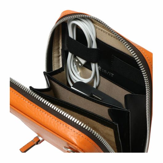 中のつくりにこだわり、見た目はコンパクトながらも、内装が3室仕様のイズイットのミニショルダーバッグです。スマートフォンを収納するために、内装生地にはソフトな起毛素材を採用しています。身軽で出かけたい人におすすめしたいアイテムです。