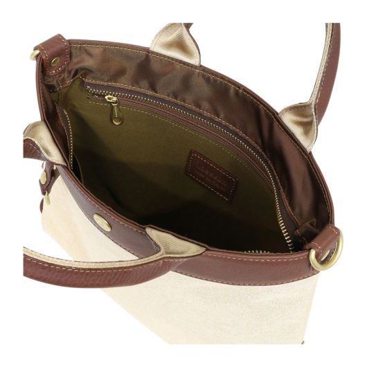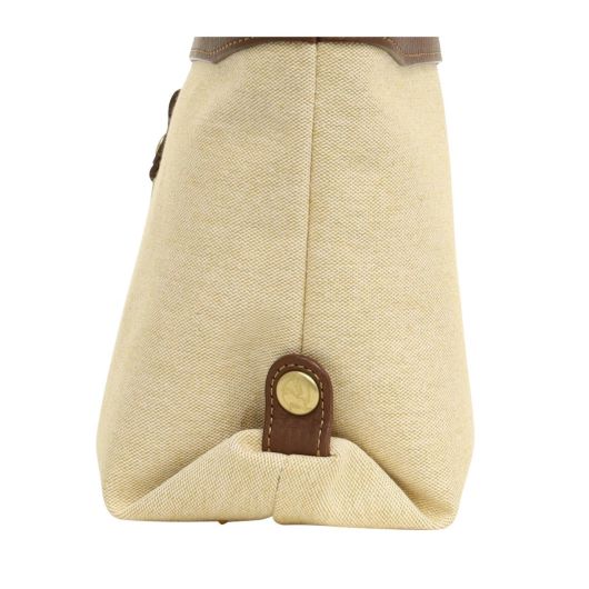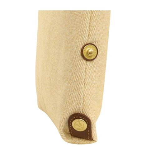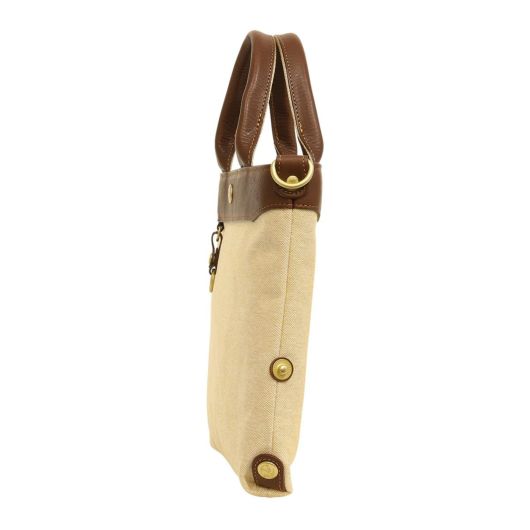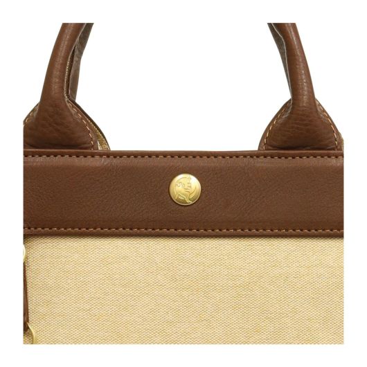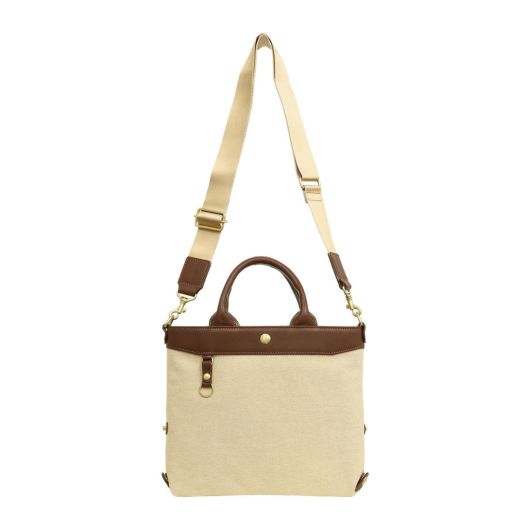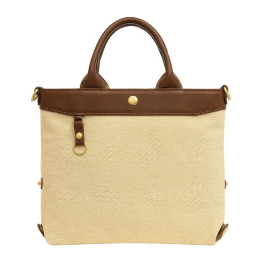 コットンシャンブレー素材に牛革を付属したシリーズ。シャンブレーとは、先染めした色糸をタテ糸に、白い糸をヨコ糸に使用し、平織した生地のことで、布の表面に霜降りのようにポツポツと白糸が現れることで上品さを演出している素材です。