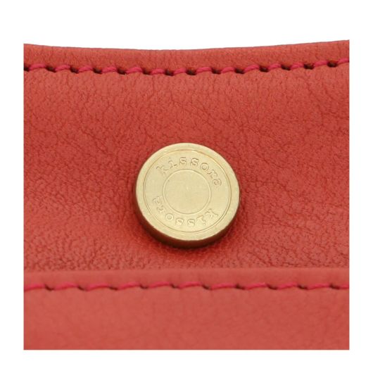 どんなファッションにも合わせやすく、取り扱いしやすい革を使用しており、日常使いにピッタリのシリーズです。シンプルな表情ですがタックを入れることによりふんわりとしたボリュームが出て、アクセントとなっております。正面の肉厚なブローチが高級感を演出しております。