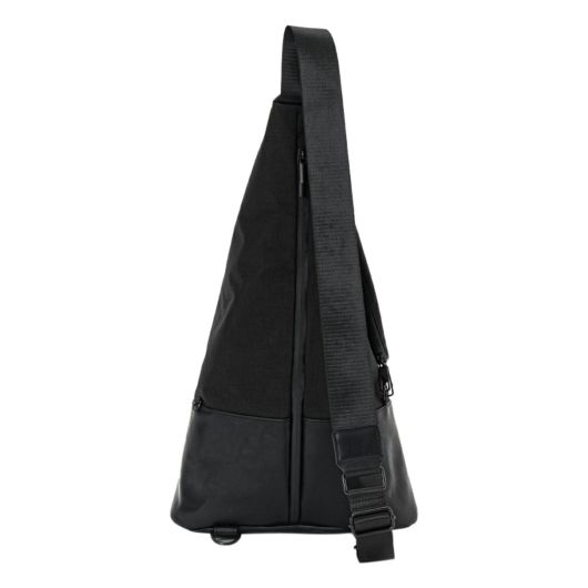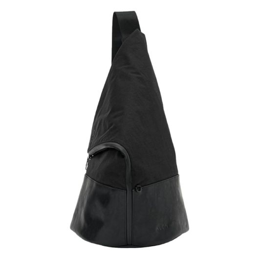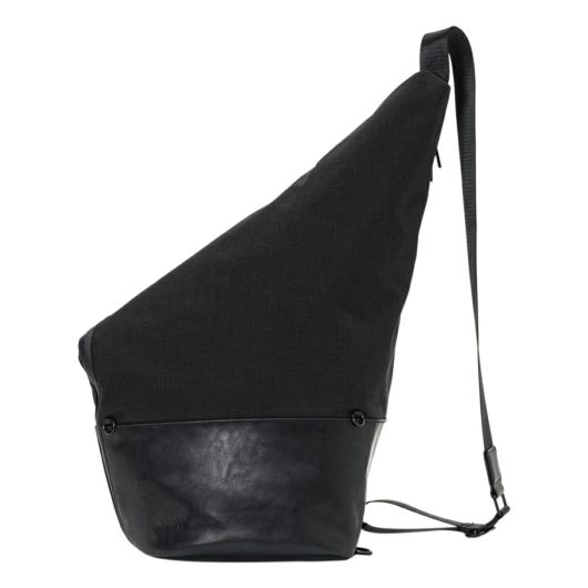 大胆なシルエットが唯一無二のワンショルダーバッグ。上部を折り返したようなユニークなデザインが視線を奪い、立体的なフォルムがスタイリングに新たなアクセントを加えます。通常のナイロンと比べて摩擦に強く丈夫で軽量なコーデュラナイロンに本革にも見劣りをしないヴィーガンレザーの艶感をプラスした異素材のコントラストが、上品さと抜け感を同時に叶えます。