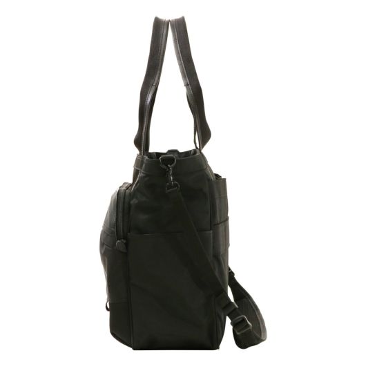 メインファブリックにはオリジナルマテリアルのMOONLIGHT FABRICを使用しています。縦横の糸に異なるカラーを使用することで光の反射や角度によって様々な表情を見せる素材になります。生地の裏面にはGBP加工を施すことで適度なハリ感と耐水性をUPさせております。付属のレザーは上質なイタリアンレザーを使用しファスナープルは2枚合わせでボンディング加工をするなど丁寧に仕上げております。高度な技術がいる立体的なパターンの組み合わせのより表現できる考えられたシルエットは使用したときにスッキリとした印象を与えてくれます。クッション材入りのハンドルとショルダーストラップが体にかかる負担を軽減してくれます。
