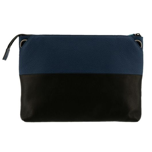 ランバンオンブルーのレザーショルダーバッグ。ワンショルダーバッグ、クラッチバッグとしても持てる3WAYです。全3色の大胆なバイカラー。ランバンオンブルーらしいブルー、爽やかなシロ、シックが好きな方におすすめのクロのエンボスレザーと、クロのソフトスムースレザーの組み合わせで、カラーだけでなく異素材のミックスが魅力です。