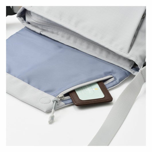 幾何学的デザインを生かした収納力 旅先でも活躍する小型ショルダーバッグ。