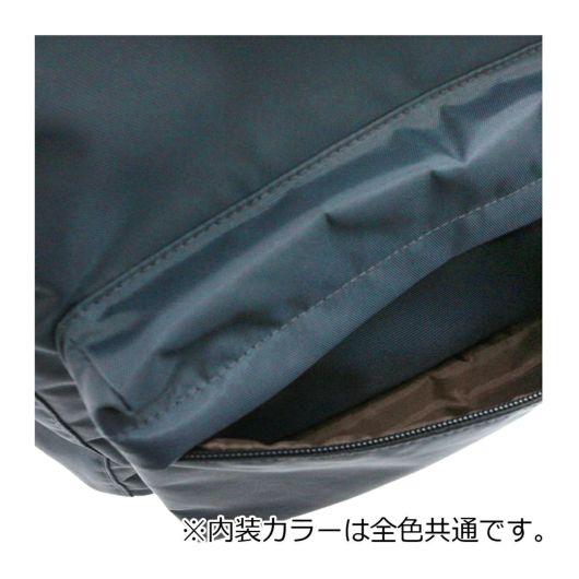 水に強いナイロン生地を使用し、ブラックのリフレクターは夜間はしっかり光を反射するので夜間の安全性も確保できます。背面にPC用のサイドポケットがあり、PCの取り出しがスムーズ 。上部に小物の整理ポケットがついており、カジュアルな見た目ですがしっかり機能的です。
