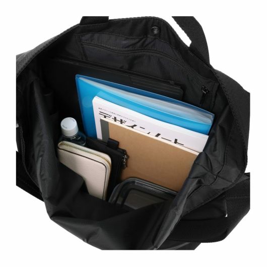 シンプルなスタイルのトートバッグに、ショルダーストラップを装備した2WAY仕様。A3ファイル、17inch程度の大画面ノートPCが収納できる大容量サイズで、通勤+ジム通いや出張といった荷物の増えるシーンや、レジャー・スポーツを楽しむアクティブなシーンでも活躍。