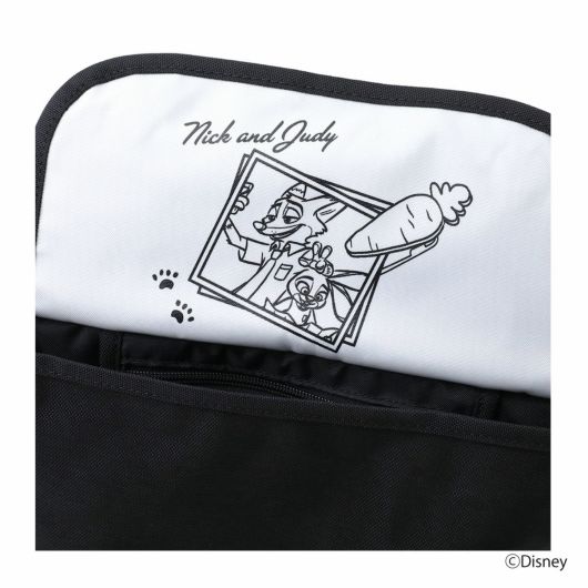 『ズートピア』では、誰でも何にでもなれる。――そんな印象的なフレーズをレターロゴであしらい、物語に登場する名コンビ「ジュディ」と「ニック」の関係性や世界観を表現した、遊び心あふれるデザインに仕上げました。ブランドラベルのそばには、足跡モチーフを刺繍でさりげなくプラス。フラップの裏面には、スナップ写真風のプリントで、二人のユニークな関係性を描いています。軽量で耐久性に優れたCORDURA 500デニールの生地を採用し、デイリーユースにも最適。ファン心をくすぐるディテールが随所に光る、特別感のあるアイテムです。