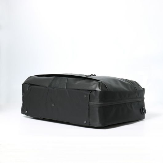 本体素材は環境汚染の誘因となる溶剤等を約90%排除された環境に優しいエコな高耐久ポリウレタンを表面にコーティングした600dポリエステル生地を使用しています。表面は綾織りをイメージした離型紙を使用することで微妙な光沢感を持たせながらゴムライクな質感が特徴的な素材です。付属生地は、タテ糸ヨコ糸に120dの不純物の少ないナイロン糸、東レ(株)のミラコスモRを使用しています。カルゼ織りすることで上品な光沢感のあり、斜めにくっきりと入った畝が特徴の生地です。さらに裏面にPVC加工を施し防水性とハリ感を持たせていま
