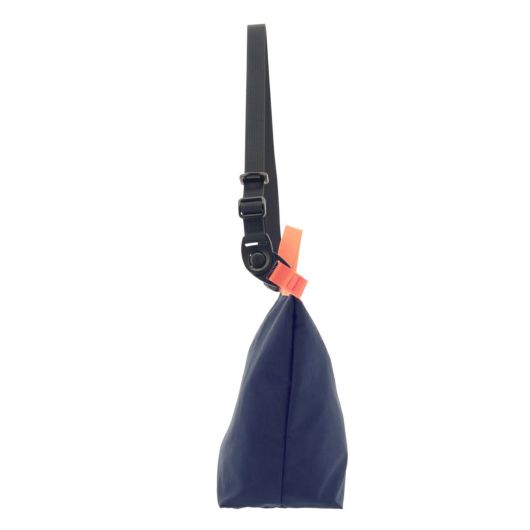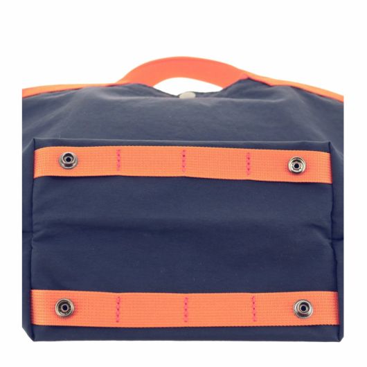 シリーズ最大の特徴である、底に設けたホックを留めることでマチを無くしたり、違うシルエットに変形することができます。またショルダーベルトを外し、本体のバックルを止めることで違うニュアンスで使用することもできます。