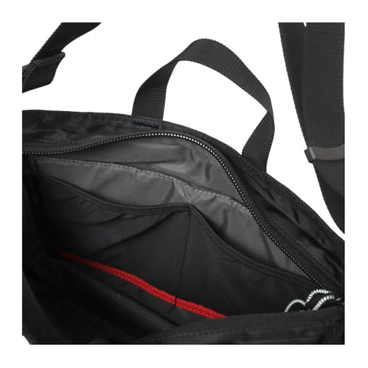 前面に斜めに入ったファスナーがデザインの定番「BIAS JACK」シリーズ。内装のポケット縁には赤いラインを施されており、暗い場所でも認識しやすいように日常の様々なシーンでの利便性を向上させています。軽量設計され、タフな素材としっかりと安定したショルダーベルトでデイリーに持ち歩きたい優秀アイテムです。