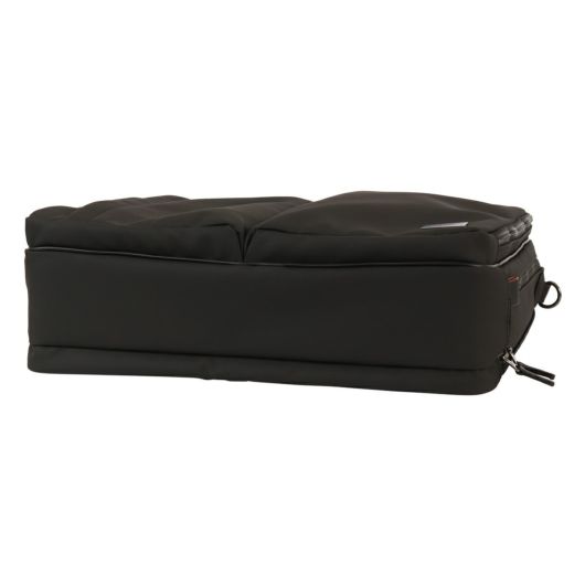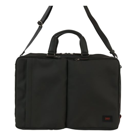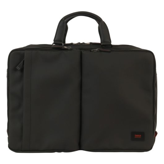 出張にも対応したタケオキクチのB4サイズビジネスバッグ。斜め掛けとしても使える肩紐付きの2WAYバッグです。従来の出社型「オフィスワーク」と、自宅やシェアオフィスなどオフィスと離れた場所で働く「テレワーク」を組み合わせた働き方が増えた中で柔軟に対応できるよう、15.6インチノートパソコンの持ち運びに対応しています。オールブラックでどんなシーンでも使いやすいビジネスバッグですが、ポイントにさりげなくワイン色を施しています。収納機能抜群で、普段の通勤から短期出張まで幅広く使えるビジネスバッグです。
