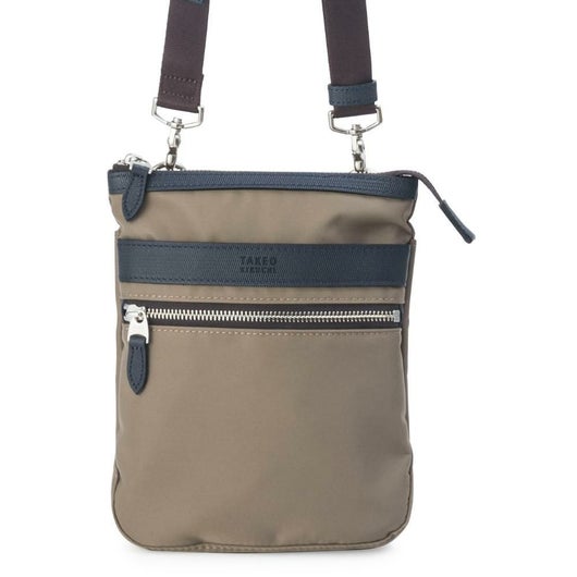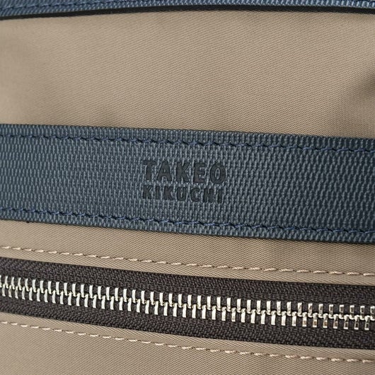 上品な光沢感と発色の良さが特徴のナイロンツイルを使用したシリーズ。本体素材には上品な光沢感と発色の良さが特徴のナイロンツイルを使用し、付属革にはミニメッシュエンボスレザーを採用。付属革にマットブラック色でタケオキクチのブランドロゴが箔押しされております。