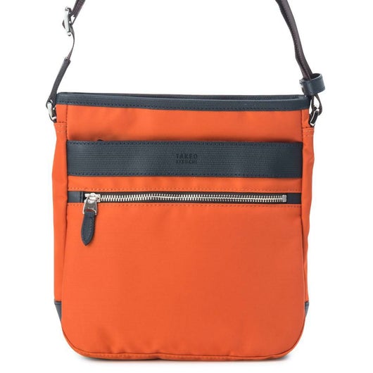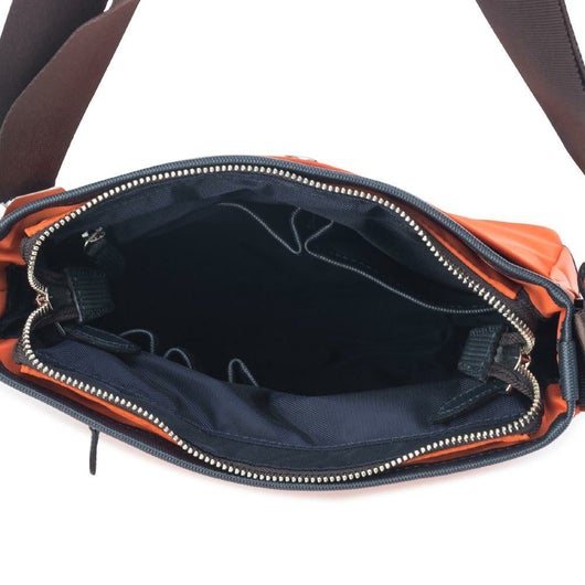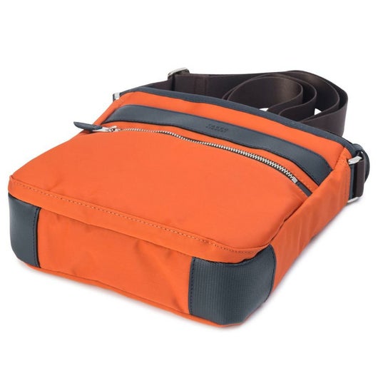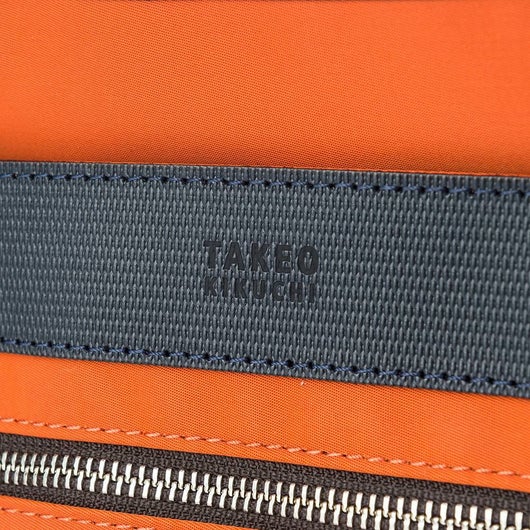 上品な光沢感と発色の良さが特徴のナイロンツイルを使用したシリーズ。本体素材には上品な光沢感と発色の良さが特徴のナイロンツイルを使用し、付属革にはミニメッシュエンボスレザーを採用。付属革にマットブラック色でタケオキクチのブランドロゴが箔押しされております。