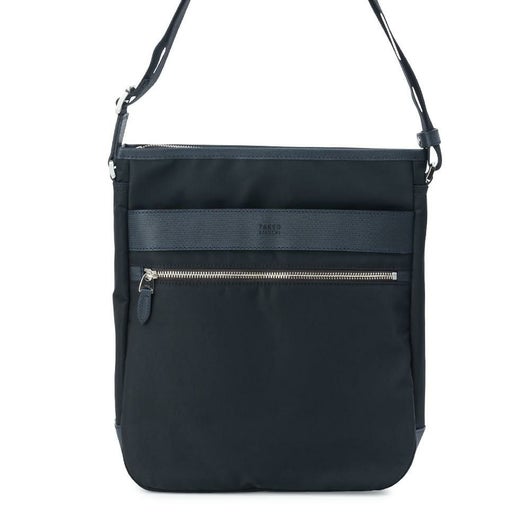 上品な光沢感と発色の良さが特徴のナイロンツイルを使用したシリーズ。本体素材には上品な光沢感と発色の良さが特徴のナイロンツイルを使用し、付属革にはミニメッシュエンボスレザーを採用。付属革にマットブラック色でタケオキクチのブランドロゴが箔押しされております。