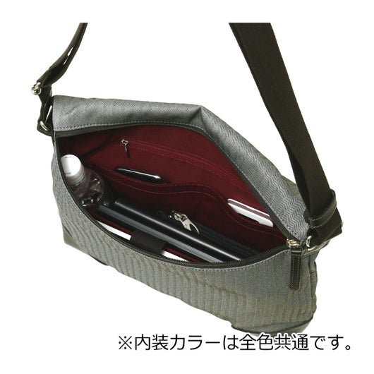大人な雰囲気の杢調ヘリンボーン生地を使用した、TAKEO KIKUCHIのカジュアルショルダーバッグ。